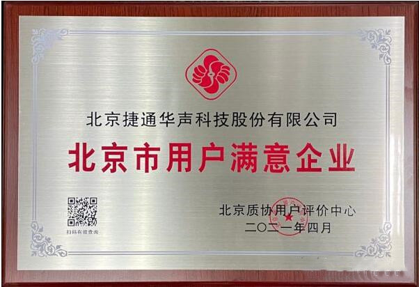 捷通华声荣获“北京市用户满意企业”