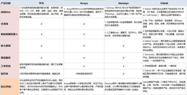 Udesk、avaya、genesys、华为四大呼叫中心厂商客服产品功能对比