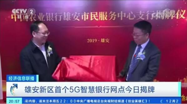 雄安新区首家5G智慧营业网点于12月20日揭牌营业!当晚黄金时段,中央电视台经济信息联播节目报道了中国农业银行雄安市民服务中心支行的揭牌仪式,雄安管委会副主任吴海军、农行总行副行长崔勇、河北电信总经理...