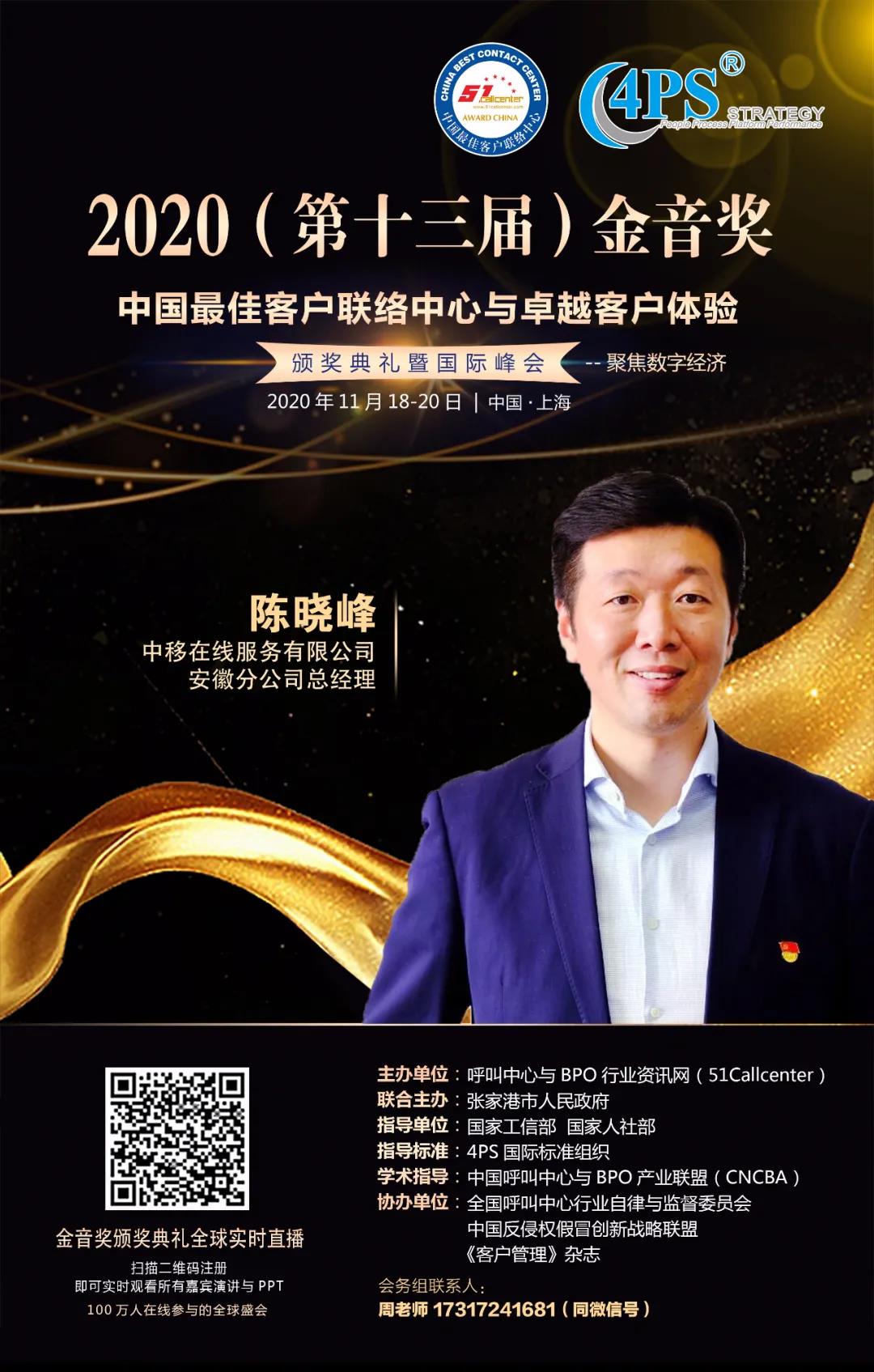 2020金音奖年会嘉宾--中移在线安徽分公司总经理陈晓峰(上海,11月19-20日)