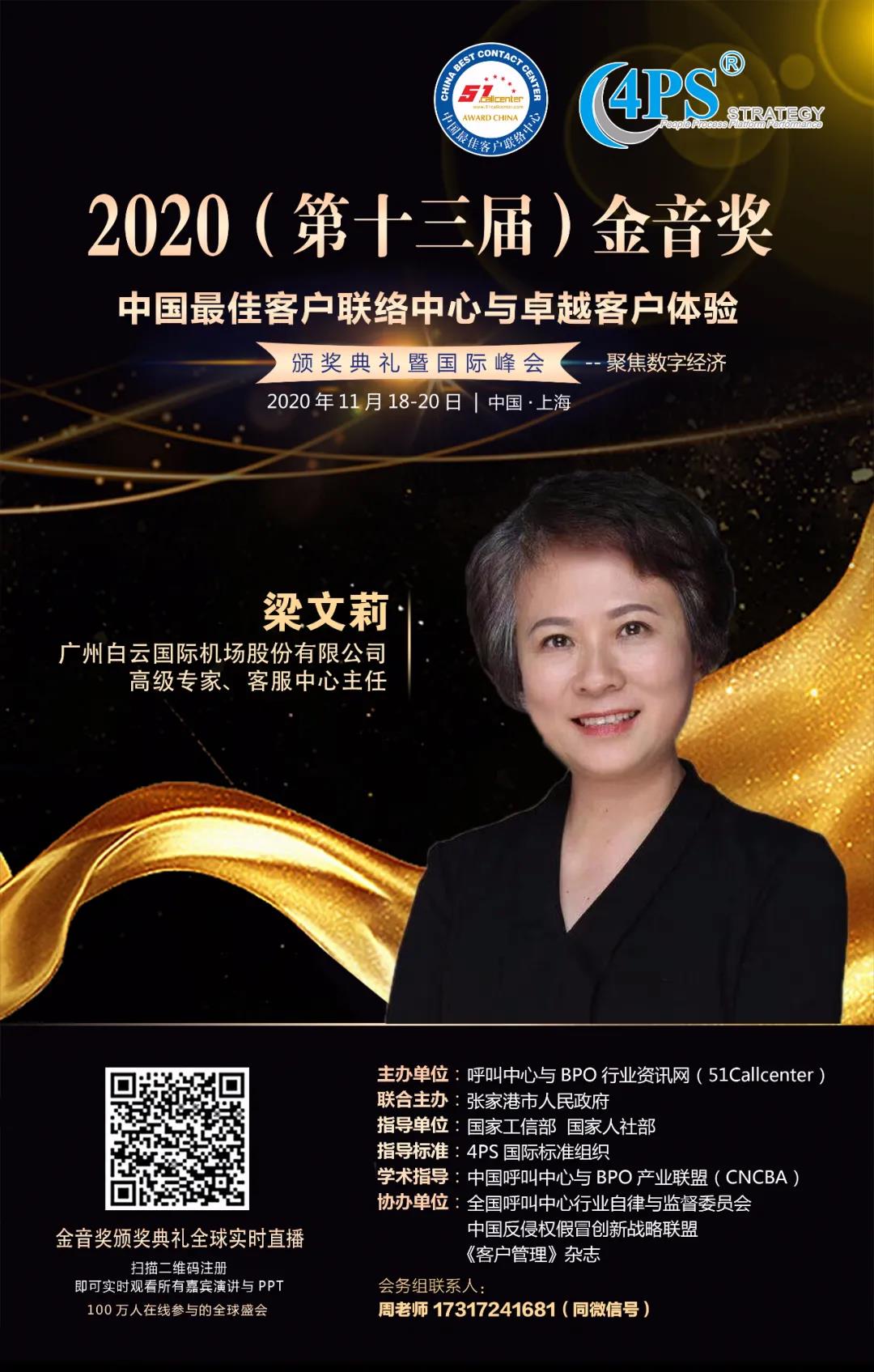 2020金音奖年会嘉宾--白云国际机场客服中心主任 梁文莉(上海,11月19-20日)