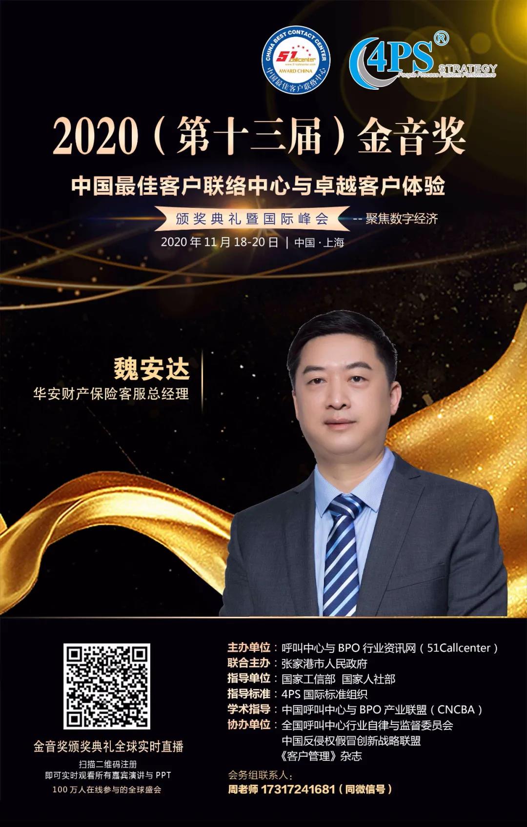 2020金音奖年会嘉宾--华安财产保险客服总经理魏安达(上海,11月19-20日)