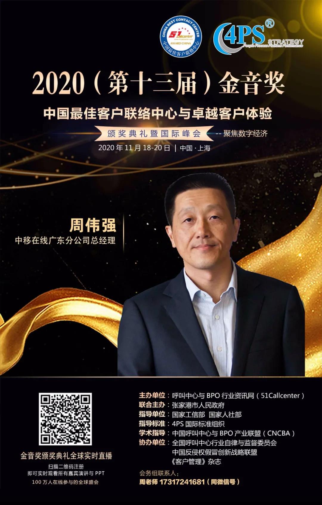 2020金音奖年会嘉宾--中移在线广东分公司总经理周伟强(上海,11月19-20日)
