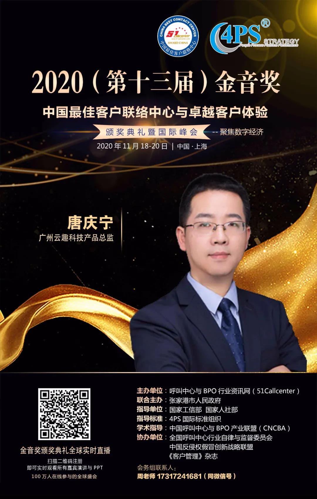 2020金音奖年会嘉宾--广州云趣科技产品总监唐庆宁(上海,11月19-20日)