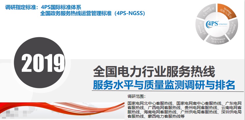 导读:4PS国际标准研究中心联合51Callcenter、CNCBA产业联盟将安排专业调研中心,以4PS-NGSS全国政务服务与公用事业热线标准为参考,针对全国电力行业客服热线服务水平进行了大范围、全...