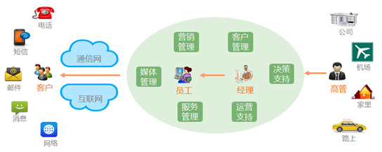 | DM 决策支持模块 | 现场管理和实时监控 服务和营销类运营报表 销售业绩报表和利润分析 客户基础报表和统计分析 工作质量和经营分析报表………… | 企业高管 部门管理人员 |