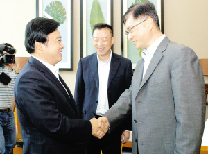 昨天(12日),市委书记刘永忠在南京拜会了中国移动集团总裁李跃,双方就进一步加强合作、加快淮安打造未来的中国“声谷”进行了亲切交谈。江苏移动公司总经理王建,市政协主席王维凯、副市长戚寿余等会见时在座。