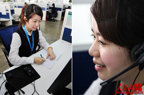 沈青青,今年24岁,湖州人,担任浙江移动10086接线员已经两年了,是2011年下半年度杭州滨江中心的服务明星。她每天要接听至少200-300个电话,每次她总能以甜美的声音为顾客解决一个又一个的问题。