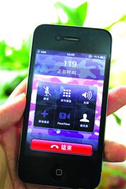 用这部手机拨打120,屏幕中部出现一个“未安装SIM卡”的提示,下方带有一个“好”字按钮,呼叫无法拨出。随后,记者用这部iPhone4手机拨打122,手机的反应与拨打120时相同。