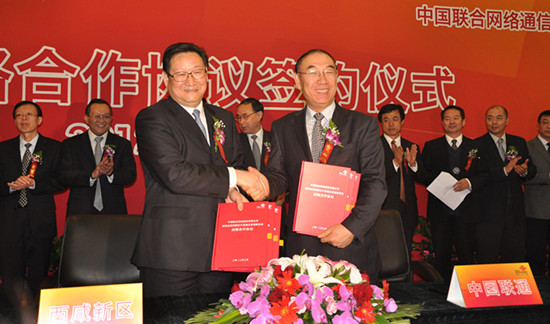 中国联通董事长常小兵与陕西省省长赵正永亲切交谈