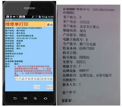 4、蓝牙打印在物流快递和保修保养等方面可以即时提供给回执:
