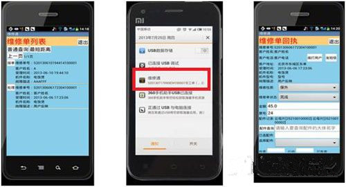 大唐推出的新功能目前已经应用于汽车4S店和家电维修行业:LBS功能通过标记各店位置,成功与售后的汽车保养提醒挂钩,包括保养预约和4S店推介;WIKI知识库为汽车行业客户解答保养专业类的知识和注意事项;XMPP推送功能为维修人员及时提供需要维修的客户情况,方便维修人员及时接单并分配最近的维修人员解答问题;维修回执也通过蓝牙打印的形式,提供客户回执单。