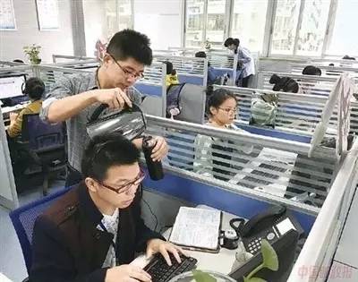 11183北京中心,话务组组长为忙碌中的话务员添水。