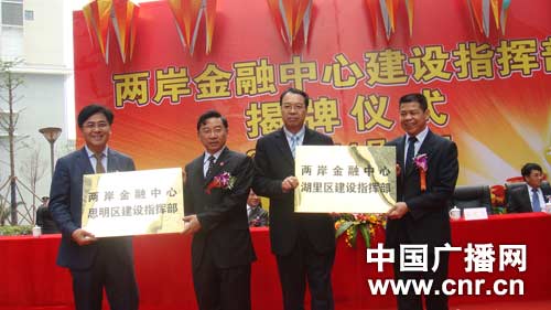 厦门市委书记于伟国(左二)、市长刘可清(左三)为两岸金融中心建设指挥部授牌