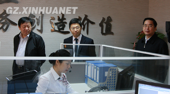 贵州省副省长黄康生(左一)到贵州省农村信用社客户服务中心检查指导(徐洪舒 摄)