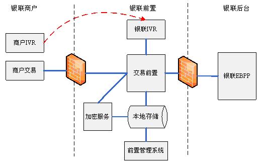 在本模式中,商户客户在商户的IVR要先产生订单号,客户姓名,证件号码等信息,先将该信息交易至银联前置系统,再通过商户的IVR系统将电话转移至银联端IVR中,在银联IVR中输入卡号,证件号码等信息,由银联的IVR报给客户交易的金额,交易人名称等,客户确认后,银联IVR调用银联电话认证支付前置完成支付交易。