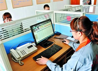 图:在即墨市居家助残“一键通”呼叫中心,工作人员在操作维护服务系统