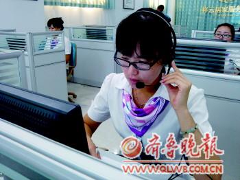 威海市祥云居家服务呼叫中心工作人员为来电居民提供服务。
