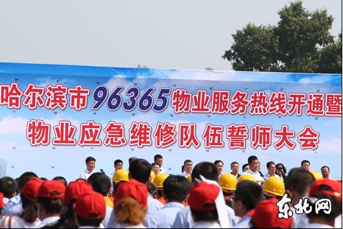 东北网7月15日讯 (记者 王忠岩) 15日,哈市96365物业服务热线开通暨物业应急维修队伍誓师大会在防洪纪念塔广场举行。今后,物业应急维修烦心事、物业管理投诉、咨询,市民拨通96365就可得到及时回应。
