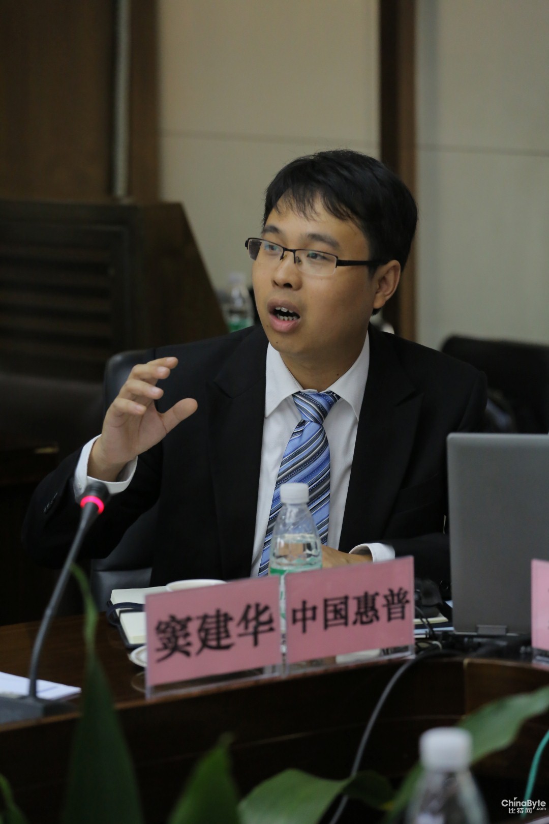 中国惠普有限公司企业集团技术服务部解决方案经理窦建华向媒体介绍惠普综合政务服务体系
