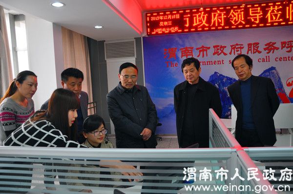 渭南政府网讯(段小丽)12月18日,渭南市12345政府服务热线正式开通运营。当天下午,副市长刘新兴来到12345政府呼叫中心,对热线的开通运营表示祝贺。这意味着老百姓又多了一条反映诉求、解决问题的途径。