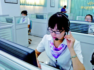 威海市居家服务呼叫中心工作人员为来电居民提供服务。(资料片)