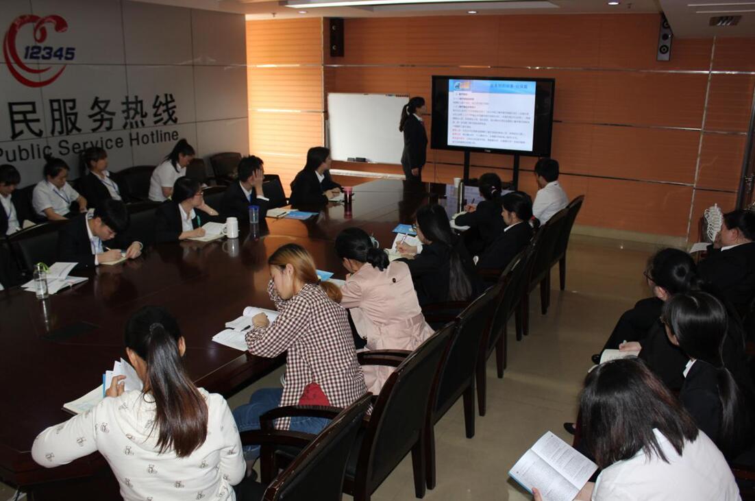 2017年4月18日下午,长沙市12345市民服务热线呼叫中心,为了让前台话务员更加全面地掌握国家对职工“五险”调整后的相关知识,更加准确地在线回复市民来电、提高在线办结率,特邀请市人社局专业培训师来到呼叫中心现场,为前台话务员详细讲解了职工“五险”的相关政策和有关知识。