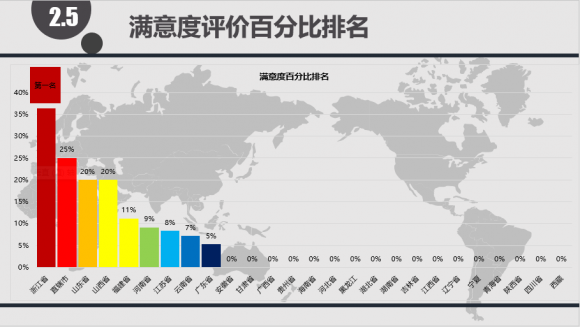 各省市从接入渠道多样化、全业务类型和全天候服务等四个方面进行调研,根据数据得出了各省市的排名第一。
