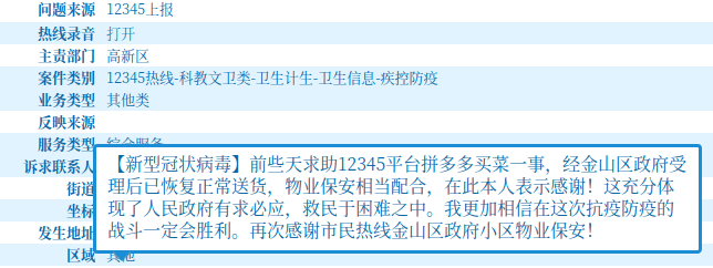 市民服务热线办理工作一端连着政府,一头系着百姓,是党委政府和市民的连心桥。本轮全市疫情发生以来,金山区始终坚持人民至上理念,高度重视12345市民服务热线中反映的问题,积极协调解决群众疫情期间物资购买、就医配药、通行需求等问题,及时回应群众关切。