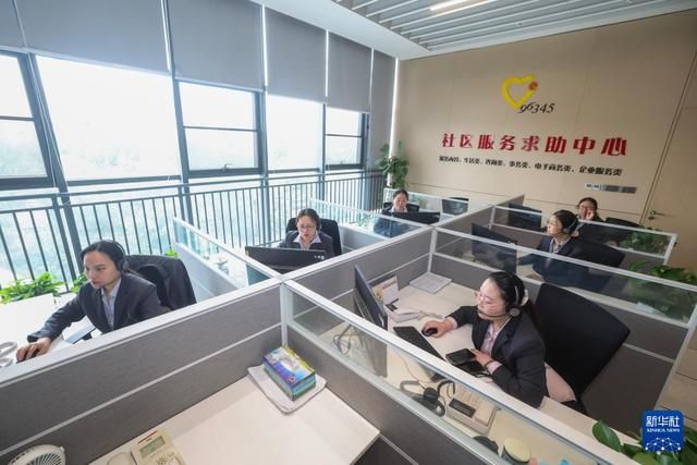 6月7日,在嘉兴市96345社区服务求助中心,工作人员在接听热线电话,并协调相应部门或者专业技术人员进行服务。
