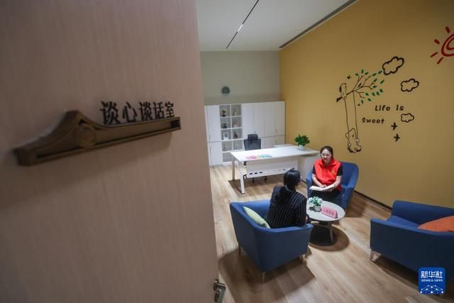 6月7日,在嘉兴市96345社区服务求助中心的谈心谈话室,专业心理咨询师在为一名学生家长进行心理咨询。