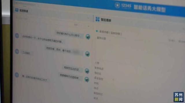 苏州市便民服务中心督查科(信息科)副科长陈敏杰表示,更快、更好地去记录市民的诉求,能够实现一键的总结提炼,还有知识推荐,一些政务咨询类的问题后台是有知识库的,能够一键向座席代表去推送相关信息,方便去解答市民的诉求。