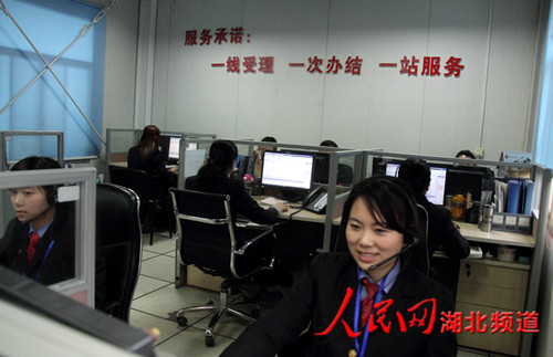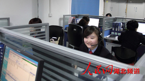 2月18日上午,武汉铁路局12306客服中心工作人员正在紧张地接听电话