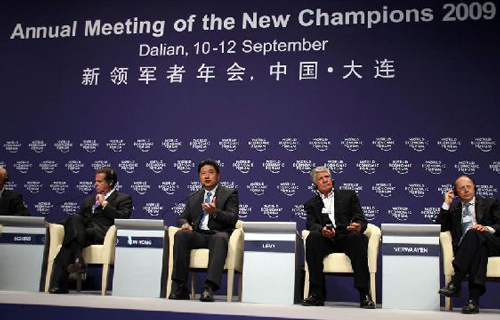 温家宝总理在大连夏季达沃斯年会上发表演讲。