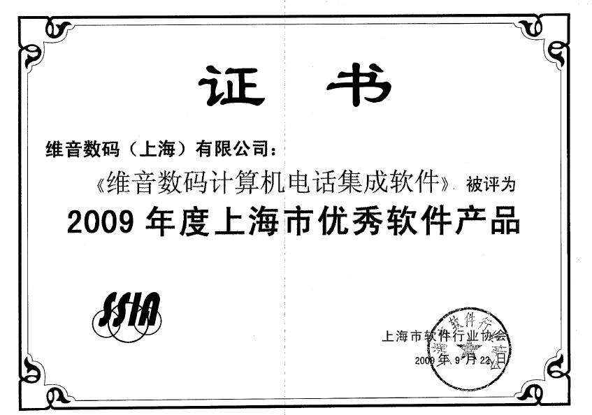 金秋十月,捷报频传,由上海市软件行业协会开展的2009年度上海明星软件企业评选结果出炉,维音数码不仅荣登:“2009年度上海明星软件企业(经营型)”和“2009年度上海明星软件企业(创新型)”获奖榜单,维音数码自主研发的软件产品 VisionCTI(计算机电话集成系统)更是被评定为“2009年度上海市优秀软件产品奖”。