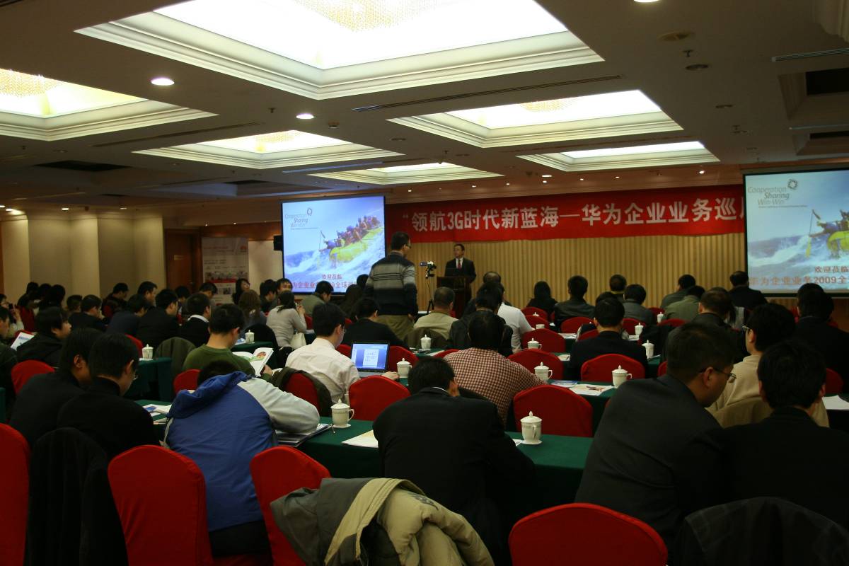 北京地区150余名来自政府、金融、IT、教育等各行各业的精英齐聚一堂,分享优秀案例实践,体验3G时代华为多媒体联络中心和统一通信解决方案,探讨共赢合作体系。