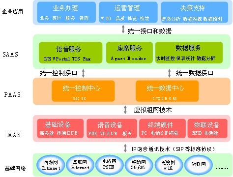 英立讯科技认为,“云计算”技术从其本质上讲并不是一种新的技术形势,是从网格计算发展变化过来的一种多点协同计算的方式,网络技术的应用也是其重要的支撑模式。当然目前在联络中心领域“云”的概念已经有了更宽阔的外延和发展,但其核心所强调的无外乎是计算资源在网络中的合理复用、灵活调动;业务推广的随需部署、因需调整等能力;当然其强大的可扩展能力、高可靠性、高通用性及虚拟化服务等也是其自身的重要特质。另外节能和环保也是这种方式广泛的被大家重视的原因之一。在一般的IT环境中我们常见的云计算服务类型是IaaS( Infrastructure as a Service基础云)、 PaaS( Platform as a Service平台云)及SaaS(Software as a Service应用云),针对联络中心领域因其应用的特殊性我们面对的是属于私有云范畴的建设工作,又因在该领域中各个用户间个性化应用的普遍性,目前还很难总结出一种典型性应用能够普遍覆盖大多数用户的应用需求,这也是很多集成商及运营商们在这个方面执着探索的原因。