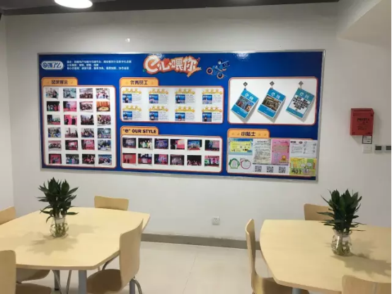 ▲中心大厅的文化角,除了优秀员工展示、业务交流,也有各种小贴士,告诉员工怎样保护嗓子等等