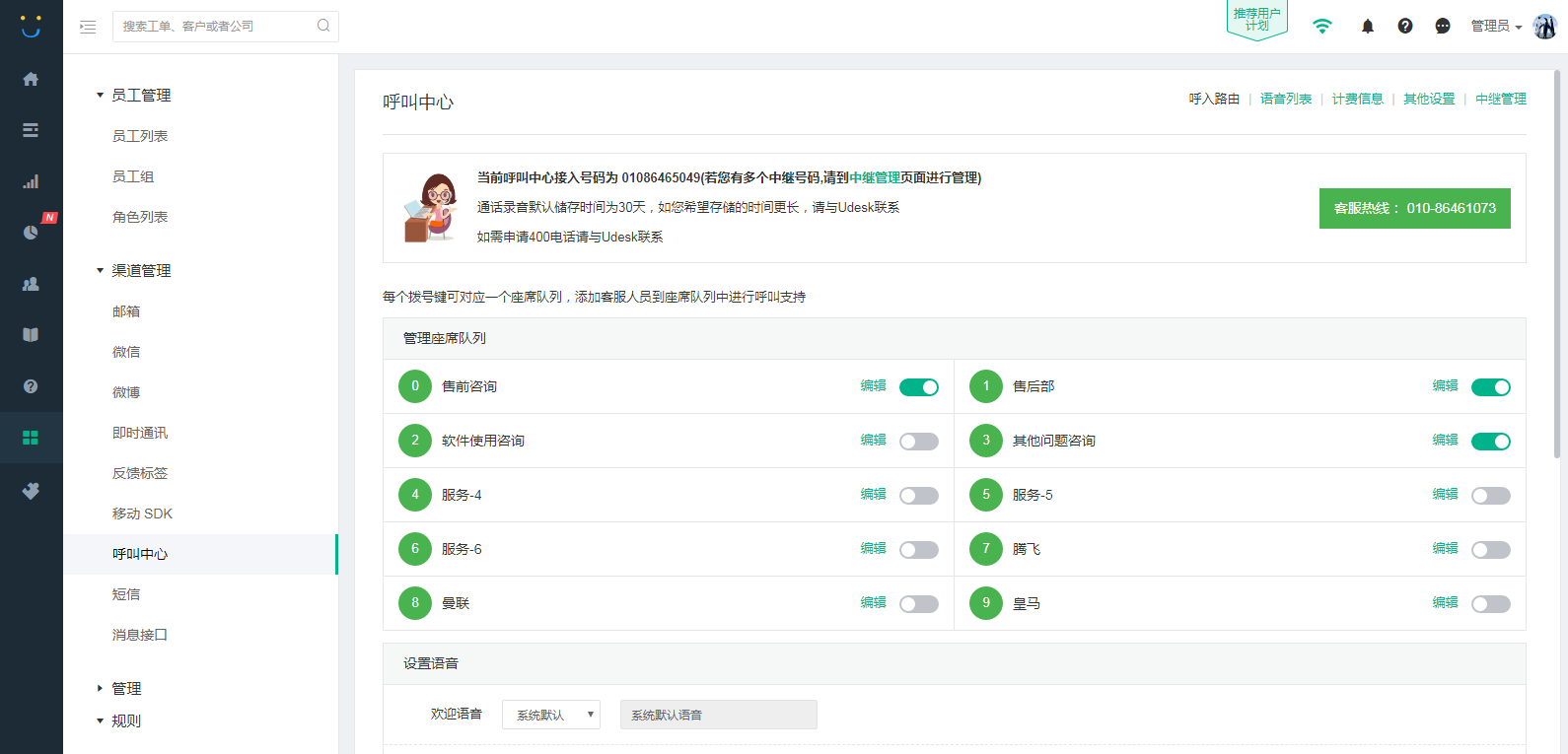 3、Udesk云呼叫系统解决方案,灵活配置呼入呼出规则,提高客服使用率和服务质量