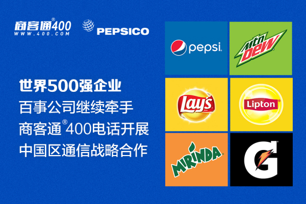 近日,商客通400电话与世界500强企业百事公司再次签订合作协议,双方继续就中国区400服务热线及通信增值服务开展通信战略合作。