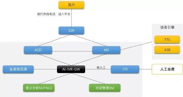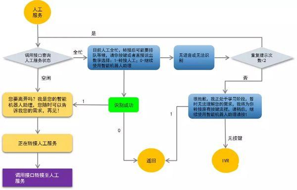 语音识别技术在实际应用当中,由于地域发音差异、方言及业务差异等因素,有效识别准确率能达到85%已经很高,如果AI业务经常出现“对不起”、“我没有听清楚”、“你是否重复”等,必定会引起用户反感,体验好感度还不如选择按键转接人工。目前的AI应用在系统前端做简单的过滤,回答简单的问题,业务流程较为单一时可由AI来实现,然后再由人工坐席做进一步处理。一个完整的呼叫过程可以从AI开始,人工参与,再到AI结束。这个流程中则需要非常好地完成AI与坐席间的无缝转接。