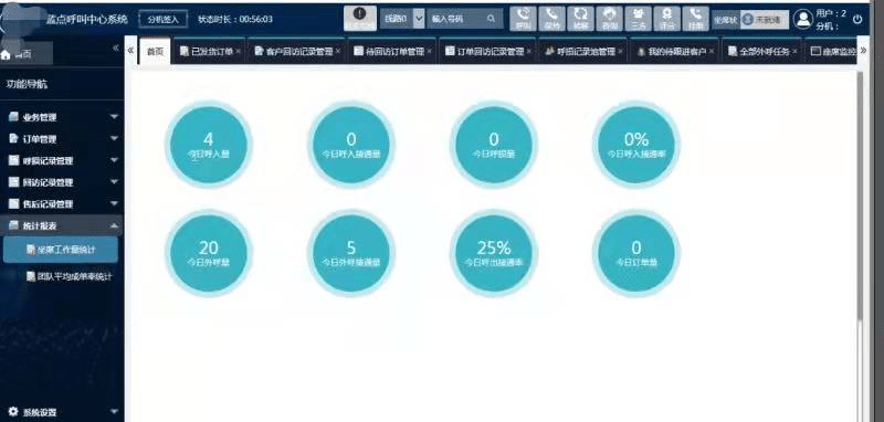 为保证居家坐席的服务质量和绩效,呼叫中心支持多维度展示业务数据:电话排队数、电话接通率、呼损率等数据,便于管理者直观地掌握呼叫中心的运行情况,业务高峰时,合理进行人员分配,确保呼叫中心有序、高效运行。