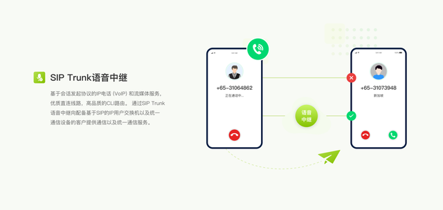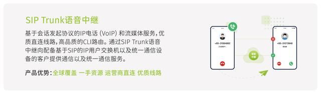 NXCLOUD牛信云出海语音中继(SIP Trunk)是一种基于 SIP 协议的系统,即基于会话发起协议的IP电话 (VoIP) 和流媒体服务,优质直连线路,高品质的CLI路由。通过SIP Trunk语音中继向配备基于SIP的IP用户交换机以及统一通信设备的客户提供通信以及统一通信服务。