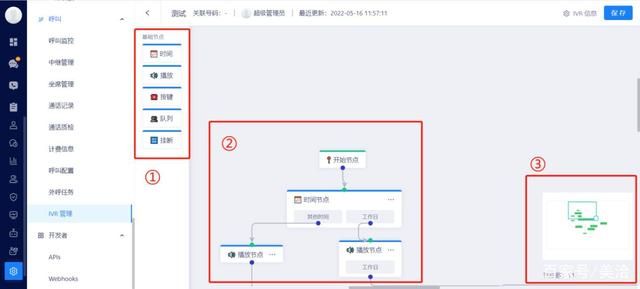 美洽呼叫中心 IVR 功能,可通过拖拽的方式进行配置。通过合理设置,客户可以通过 IVR 按键菜单实现自助操作,解决如查询订单这样的简单问题;
