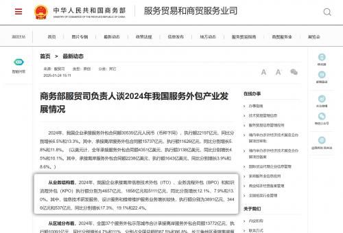 图1:商务部官网发布2024年我国服务外包产业发展情况