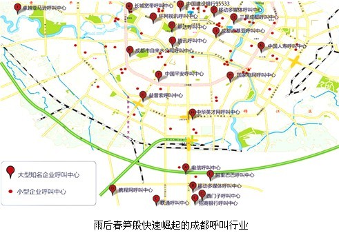 成都作为全国首批服务外包基地城市,以良好的生态环境,丰富的人才储备,相对的成本优势,成为世界呼叫中心产业外包转移的重点城市。目前已经吸引超过120家企业在蓉建立自己的呼叫中心,高新区已建成大型呼叫中心产业园,明确要将成都建设成为“西部最大的呼叫中心产业园”。行业发展潜力巨大。
