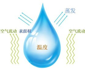 自然科学中,水蒸发的因素主要有三点(图1):1、水的温度,因为温度越高,水分子运动越剧烈,蒸发越快;2、水的表面积,水的表面积越大,水分子挣脱束缚的能力就越强;3、水周围空气流动的速度,周围空气流动的速度越快,蒸发越快。