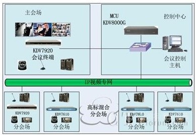在部署上,市卫生监督所主会场部署高性能多点控制单元KDV8000G MCU及高清视频会议终端KDV7920,其他县级分会场则根据自身情况分别部署KDV7920高清视频会议终端及KDV7610标清视频会议终端。通过IP视频专网,主会场的MCU将来自主会场、分会场的高清、标清码流进行汇集、处理及转发,从而实现主会场与各分会场、分会场与分会场之间便捷的远程视频沟通。