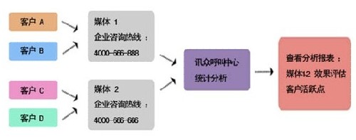 对于票务行业来说,企业一样可以通过对客户来电时间、上网IP、通话记录、获取信息你来源等数据的整合,分析客户喜好和导向。讯众通讯托管呼叫中心系统可以对客户的有效线索进行记录,并按企业需求进行日、月、年等时间段统计,用数据反映客户活跃时间、活跃地区,以及客户偏好。企业更可以在不同的媒体投放不同的400号码,利用系统对电话咨询和预定量的统计,对媒体效果进行有力评估,使客户线索疏而不漏,推动企业精准营销。(如下图:)