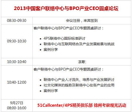 《2013中国客户联络中心与服务外包CEO圆桌论坛》 (9月27日9:30-12:30)